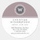 A clean contemporary design that can work for many sorts of businesses including a salon, massage therapist, nutritionist, wellness expert, retail store or wholesaler. Your monogram sits on top of a modern ornament against mauve. Great promotional sticker to use as envelope or package seals, or use on customer purchases or invoices. Available in alternate colours with matching products.