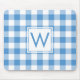 Modern Monogram Baby Blue & White Gingham Pattern Mouse Pad