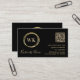 Modern Monogram Black Gold QR Code Business Card