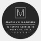 Elegant black or any colour return address label with your custom monogram initial inside a square border and your return address in a modern sans-serif font below. All colours are customisable. Move and resize elements and text with the design tool.