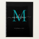 Modern Monogram Black Teal Green Girly Script 2021 Planner