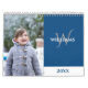 Easily create your own modern monogram 2026 calendar. Replace the sample images for the cover and each month. Add your name, monogram, and the year in the sidebar. The cover features a vertical photo on the left and your monogram and name on the right on a blue background. The year will appear in a blue font on a white color block below.
