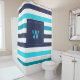 Modern Monogram Blue Teal Stripes Shower Curtain