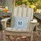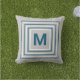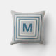 Fun light grey throw pillow with abstract blue and white squares monogram. Add your family initial to create a modern personalised design for your outdoor living space.