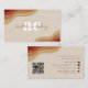 Modern Monogram Boho Beige Terracotta Wavy Line QR Business Card