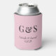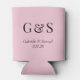 Modern Monogram Bride & Groom Names Pink Can Cooler