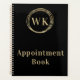 This is a modern and elegant, two initials, monogram, business appointment book design. This stylish design, is in elegant black with gold coloured typography / text and gold effect circle. At the bottom in matching gold typography are the words "Appointment Book". Add your initials by typing them into the personalise this text box. You can also change the words, "Appointment Book" to your own text, if you want to. To customise further, check out the design editing tool, where you have the option of changing the colour or font, or switching off the gold circles. For help with personalisation,  matching products, or for a custom design, contact me via zazzle chat or email: ursuladawnmoon@gmail.com