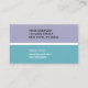A business card in aqua and lavender with a bold modern look to customize with a monogram.
