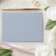 Complete your wedding suite with this simple and elegant dusty blue 5x7 envelope, perfect for modern and minimalist celebrations. Featuring a refined monogram with the couple’s initials on the top flap, a rich navy blue envelope liner, and a personalised return address, this envelope adds a sophisticated and coordinated touch to your wedding invitations.