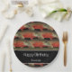 Modern Happy Birthday, Retirement, party for Man, Fishermen Fisherman, Black, White, Olive, Beige, Fisherman's themed party plates, monogrammed with name. Fly Fishing Salmon skin Watercolor pattern paper plates. This design is a great gift for men, women, and kids (and you, too, of course!). If you like fishing, lake house, or cabin decor, this pattern design and matching items are for you.