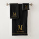Modern Monogram Gold Black Initial Name Bath Towel Set