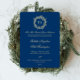 Invite your guest to your wedding during the holidays and wow them with this glamourous Modern Winter Wreath Monogram Gold Blue Wedding Foil Invitation. A beautiful script font is paired with a classic serif type and a sprig of holly berries a for a formal typography layout. The stately blue, holly berries and foil pair together for a glamourous festive affair.