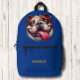 Modern Monogram Happy Puppy Dog Pet Blue Printed Backpack