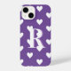 Modern Monogram Heart Pattern Purple White iPhone Case