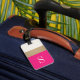 Modern and chic, this luggage features bold hot pink and gold stripes and a customisable monogram. Add you name and address to the back for a truly personalised luggage tag.