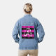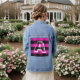 A custom denim jacket with a decorative square panel on the back. The design on the panel is magenta pink buffalo plaid check, with your chosen initial as a white capital letter forming a monogram. This cool and trendy jacket has retro elements yet is modern and stylish. Click 'Personalise' to enter the initial you would like on the design, and preview the result.