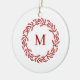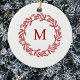 Modern Monogram Initial Red Leaf and Berry Wreath Ceramic Tree Decoration