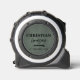 Personalised tape measure for groomsmen gifts and Christmas gift ideas for company gifts. This tape measure features personalised groomsman's name with title and wedding date in black and monogram in black, in classic serif font style, on green background. Also perfect for best man, father of the bride, ring bearer and more. *wood is image