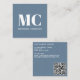 Modern Monogram Initials QR Code Dusty Blue Grey Square Business Card