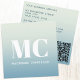 Modern Monogram Initials QR Code Teal Gradient Square Business Card