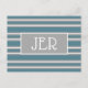 This modern template design features a turquoise background with stylish stripes in grey and white, the backside is white with a grey divider. Customise with a two or three initial monogram. The composition is simple, elegant and stylish. We hope you'll love it! We think it's a winner!