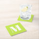 Modern monogram lime green custom initial letter party Square Paper Coasters.