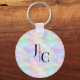 Modern Monogram Logo Iridescent Opal Stylish Key Ring