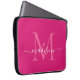 Modern Monogram Hot Magenta Pink White Girly Chic Script Name computer sleeve