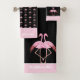 Modern Monogram Name Black Pink Flamingo Bathroom Towel Set