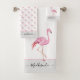 Modern Monogram Name Pink Flamingo Grey Bath Towel Set Bath Towel Set