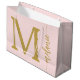 Modern Monogram Name Pink Gold Script Large Gift Bag