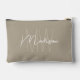 Keep your essentials organised in style with this Modern Monogram Name Script Beige Accessory Pouch. Featuring a personalised initial and name in an elegant modern script, this custom zippered pouch is perfect for storing makeup, stationery, travel essentials, or tech accessories. The neutral beige background adds a timeless and sophisticated touch, making it a great gift for women, bridesmaids, students, or professionals. Ideal for daily use, travel, or work, this custom name pouch is a stylish and practical accessory for anyone who loves personalised gifts.
