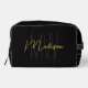 Modern Monogram Name Script Black Gold Dopp Kit