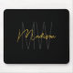 Modern Monogram Name Script Black Gold Mouse Pad