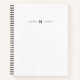 Modern minimalist notebook with name and monogram in a stylish black font. Bright white background covers both front and back. Your choice of style, inside paper design and spiral colour. Perfect for meeting notes, lists, journalling and more. Fully customisable. Designed by Kimberly Brett.
