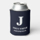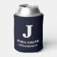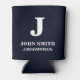 This is Modern Monogram Navy Blue Personalised Groomsman Can Cooler. This can cooler featuring is personalised monogram, groomsman's name and title. This is also perfect for Best Man, Father of the Bride and more.