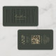 Modern Monogram Notary Signing Agent Green Gold business card with QR code