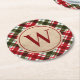 Modern Monogram on Christmas Plaid Round Paper Coaster