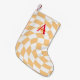 Retro psychedelic modern checked pastel peach and white checks Christmas stocking, with personalised monogram