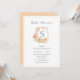 Modern Monogram Peach Crest Bunny Baby Invitation