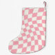 Retro psychedelic modern checked pastel pink and white checks Christmas stocking, with personalised monogram