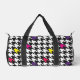Modern Monogram Pink Purple Houndstooth Duffle Bag. A modern take on the classic black and white houndstooth pattern, sprinkled with bright pink, purple, and yellow accents and a bold, distressed font. Add your monogram or initials to this stylish gym or weekend travel bag to make it uniquely yours.