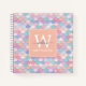 Modern Monogram Pretty Mermaid Orange Sketchbook Notebook. Personalised notebook. Mermaid pattern designed by brgfx.