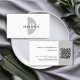 A modern, QR code, monogram business card in white, grey, and black. Simply add your information, add these cards to your cart, and then hand them out to future clients.
