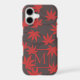 Stylish red and grey monogrammed Samsung case with elegant maple leaf art.