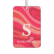Freshen up your car or truck with this Modern Monogram Red Pink Pattern air freshener while adding a pop of vivid pop of colour to your vehicle interior. This vibrant, colourful artwork with bright, saturated colours make a happy and fun decorative accent piece showcasing your initial and name while adding a delightful fragrance to your automobile. Let this artwork reflect your creative side with wavy, liquid blobs of vibrant movement while enhancing your space with this fun auto accessory.