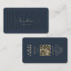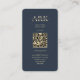 Modern Monogram Research Technician Dark Blue Gold business card with QR code