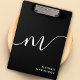 Modern Monogram Script Calligraphy Black White Name Clipboard. Easy to customise elegant script typography monogram. Perfect monogrammed name gift idea!