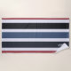 Soak in the sun in style with this stylish modern beach towel featuring a stiped design in black, white, blue and red. Personalise it by adding your own graphics or text with the Design Tool. One text line is provide in white text for your monogram, name or special quote.
