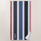 Modern Monogram Striped Black White Blue Red Beach Towel